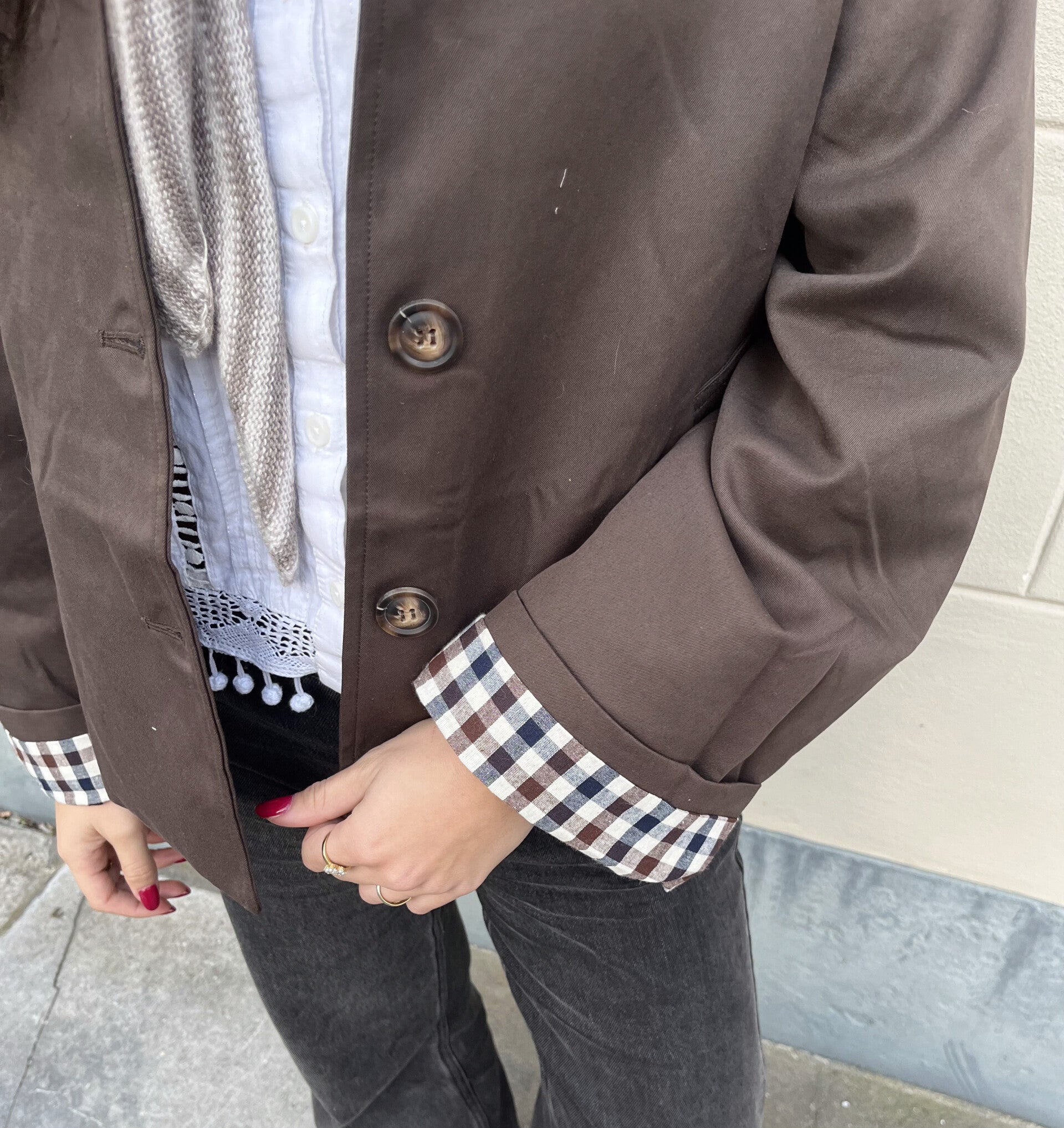 Onze Trenchcoat met Geruite Omslagmouwtjes – omdat warm blijven óók leuk mag zijn!