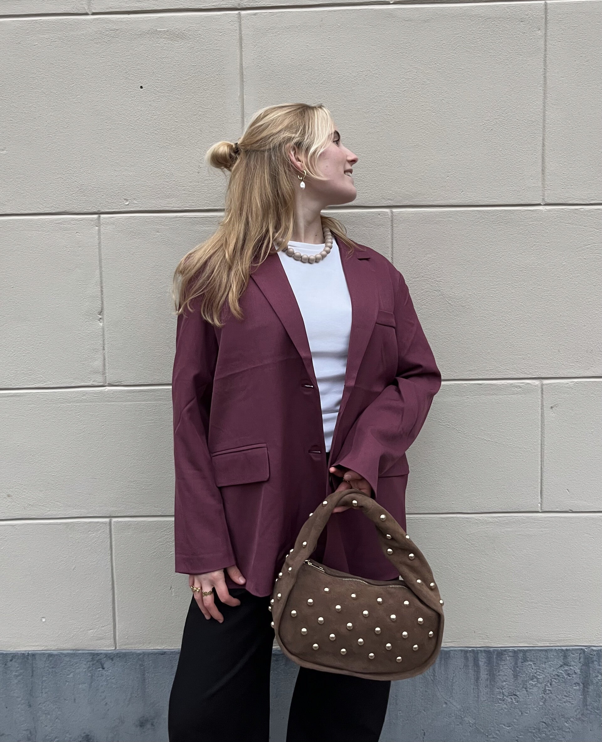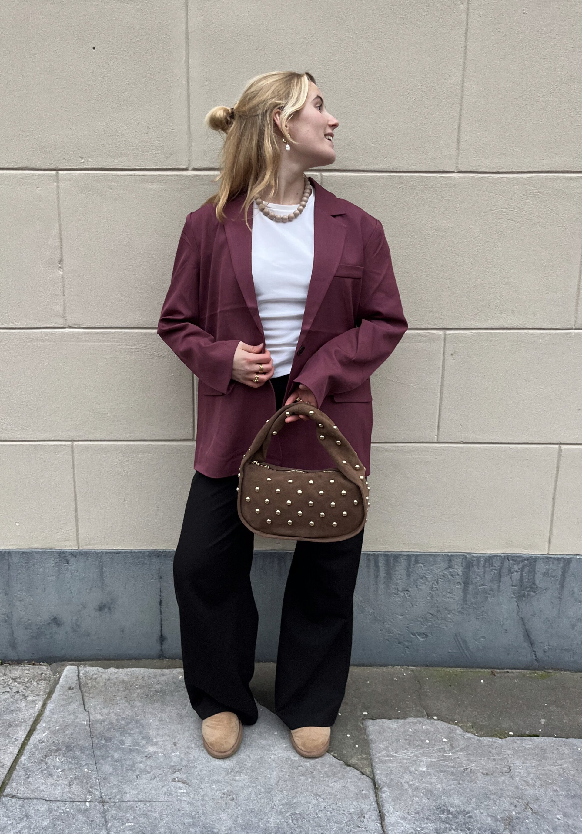 Maak kennis met de Studs Bag – de tas die nét dat beetje extra pit toevoegt aan elke outfit. Of je nu gaat voor warm bruin of chic bordeaux, deze tas steelt sowieso de show.